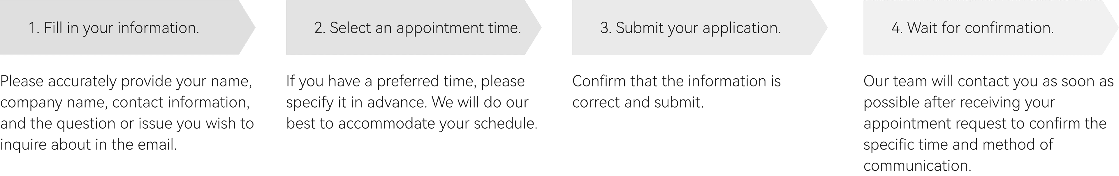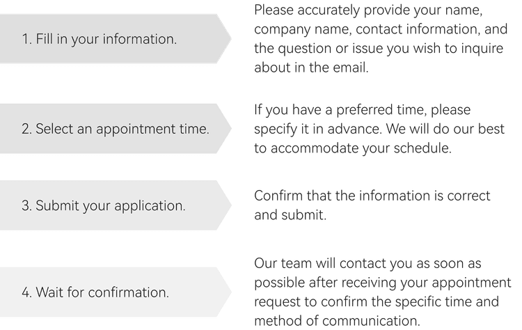 We're always ready to listen to your needs and provide you with professional answers and services. If you're interested in our products, services, or partnership opportunities, and would like more detailed consultation or an in-depth discussion with our expert team, please schedule an appointment through this page. Simply fill in your information and one of our professional consultants will contact you within one business day to confirm the appointment details. We look forward to meeting you to explore potential collaborations!